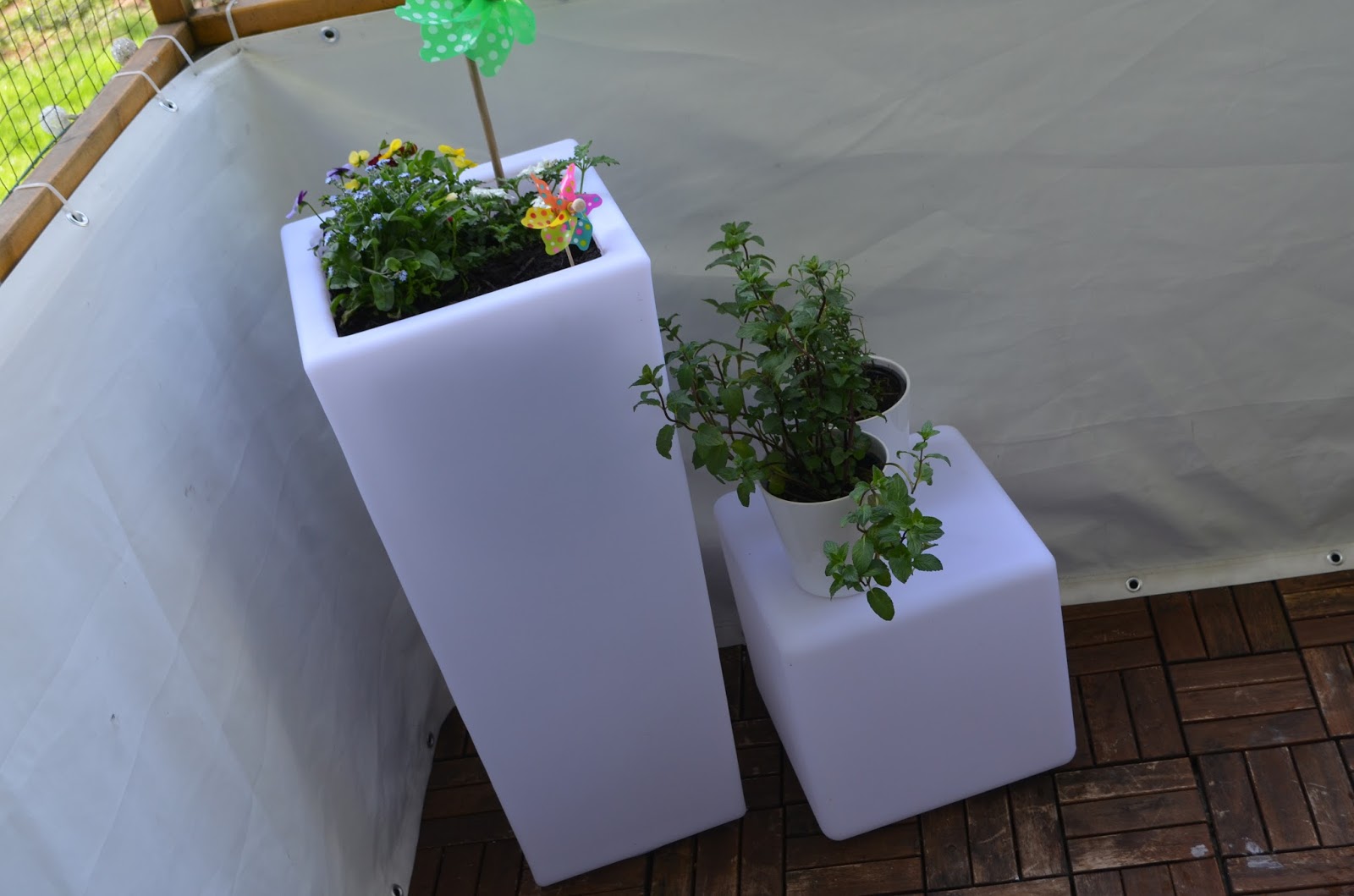 Kleinen Balkon Gestalten Graue Pflanzkubel Aus Fiberglas Nicest