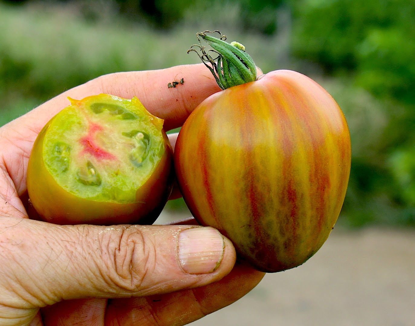 A ukrainian heirloom tomato. Green vernissage loaded with sublime sweetness and taste great for salads salsas desserts. Each of these colors has a different flavor resulting in a spicy sweet tart tomato with good acid all in one fruit. Ukrainian variety developed by ruslan dukhov. The vernissage series is both a work of art and a celebration. It has really high yields of beautiful yellow tomatoes with green stripes. Vernisazh chernyi is the other name of vernissage tomato.